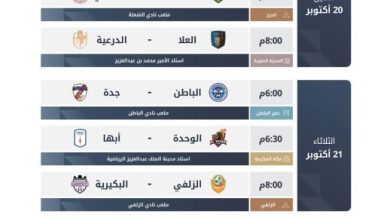 الجولة الخامسة .. إشتعال المنافسة في قمة ترتيب دوري يلو 20 أكتوبر 2025 ــ 2:39 م | تنطلق الجولة الخامسة…