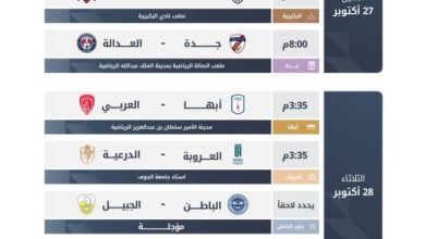 العروبة والدرعية في أبرز مواجهات سادس جولات دوري يلو 26 أكتوبر 2025 ــ 3:15 م | سبورت-علاء العلي تنطلق الاثنين…